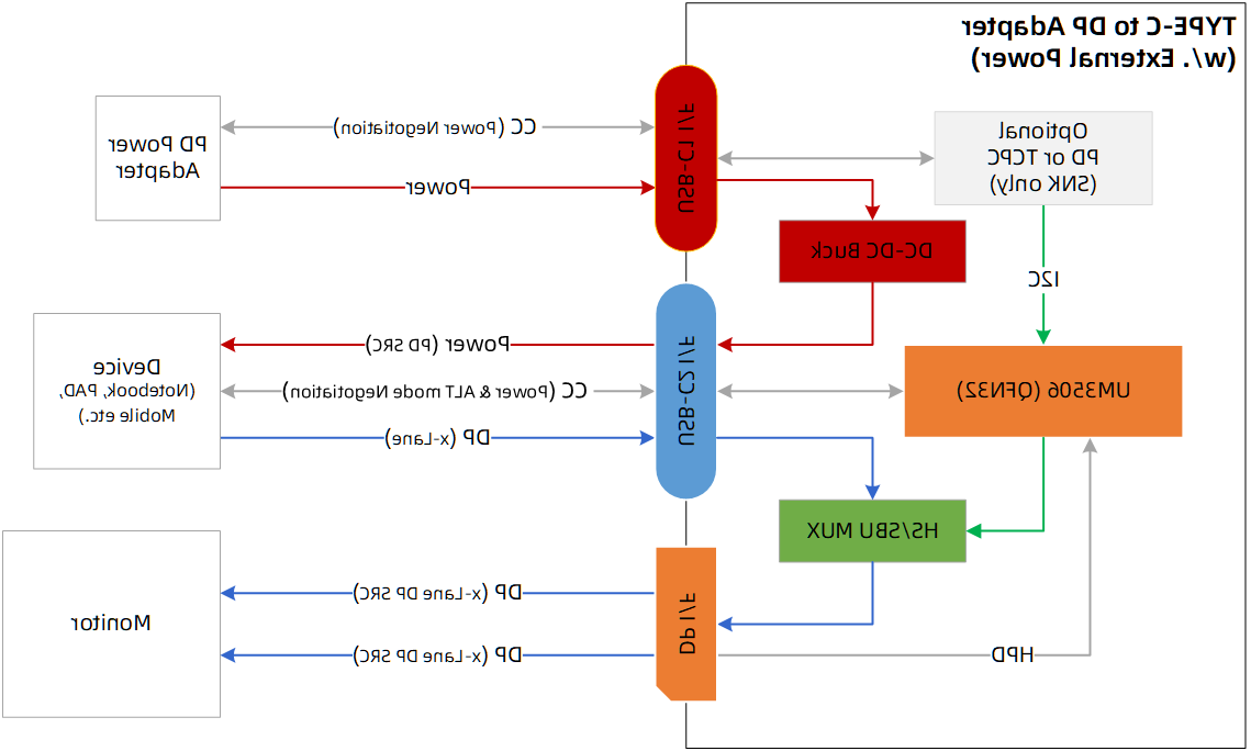 PD SOURCE 65W DP SINK (RX) 接收入 大力兼容2-lane, 4-lane的DP互传模式,, 大力兼容8K HDR 视频播放互传 扶持 AUX 1/2 鼓励HPD探测DP Native接口